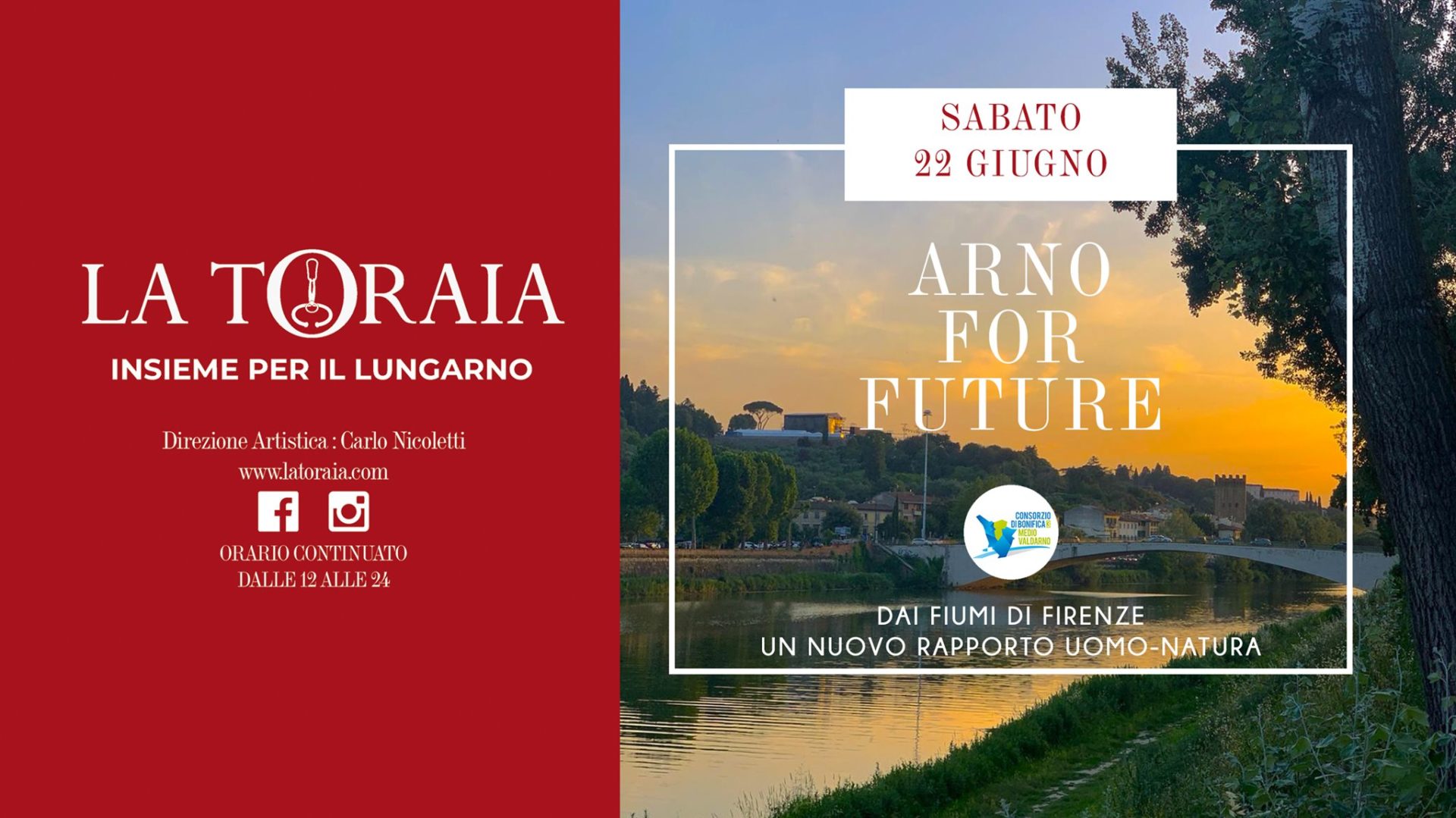 Sabato 21 alle ore 19 presso lo spazio estivo di La Toraia sul Lungarno del Tempio a Firenze il primo degli appuntamenti di approfondimento a cura del Consorzio, che per tutta l’estate avrà lì anche un punto informativo sulle proprie attività e laboratori di conoscenza sull’Arno e i corsi d’acqua fiorentini