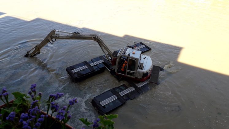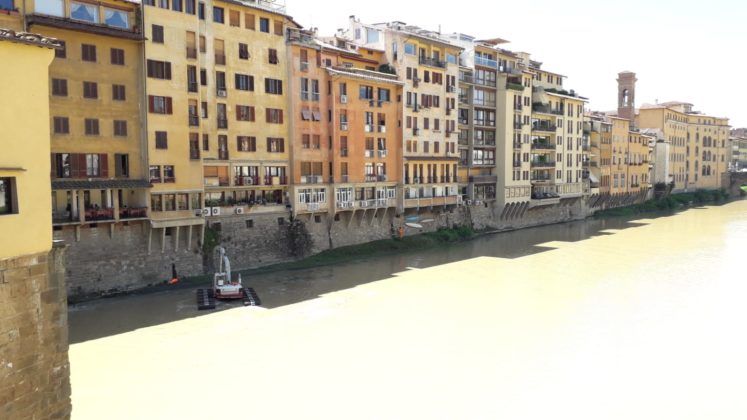 Per la prima volta nella storia uno speciale escavatore anfibio, mezzo di fabbricatura olandese tra i pochi operanti in Italia, entra in Arno per importanti lavori sulle due sponde del fiume proprio in centro a Firenze, paticamente sotto Ponte Vecchio. Dopo alcuni sopralluoghi e un’accurata ricerca di mercato che ha portato ad un’azienda del modenese, il Consorzio di Bonifica Medio Valdarno ha finalmente trovato il mezzo giusto per affrontare e risolvere la questione degli accumuli nel tratto dell’Arno fiorentino praticamente inaccessibile perché circondato dal cuore dell’antica città medievale.