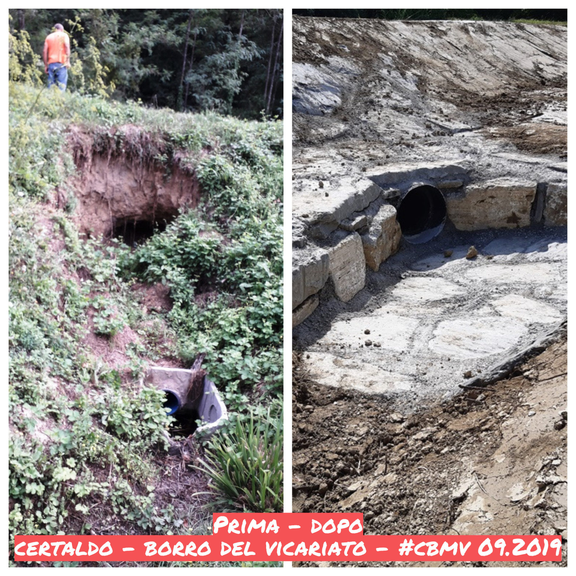 Questa volta siamo nel Comune di Certaldo, in località Canonica, sul Borro del Vicariato, dove l’immissione nel Vicariato di un fosso minore tramite manufatto di scarico, aveva creato uno svuotamento del terreno all’interno dell’argine, tale da compromettere la stabilità dello stesso.