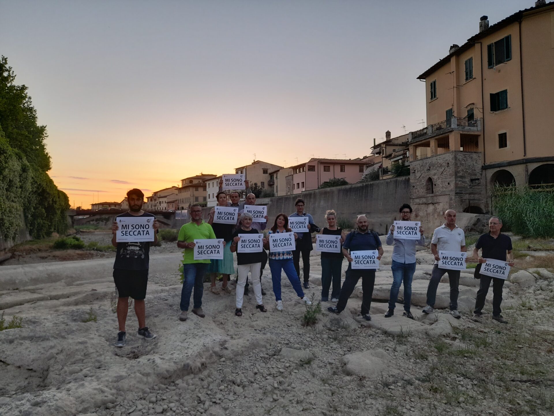 La maggior parte dei consiglieri di maggioranza e di opposizione di Montelupo Fiorentino si sono trovati nell’alveo della Pesa davanti alla scritta lasciata dall’artista visuale Elena Bellantoni