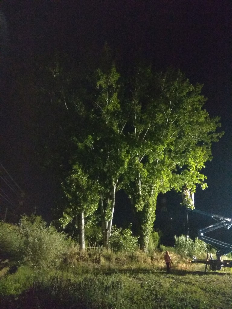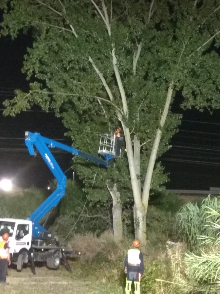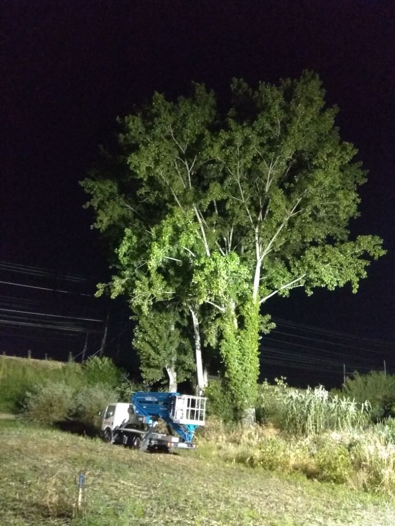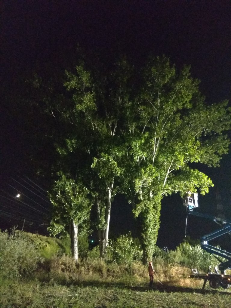 Questa volta l’intervento era programmato da tempo ed eseguito in notturna per non rischiare di interferire con il traffico ferroviario. Si è trattato infatti di procedere con l’abbattimento di due grandi pioppi cresciuti, oltremodo, nella cosiddetta fascia di rispetto ferroviario ovvero troppo vicino alle rotaie della linea Firenze-Bologna.