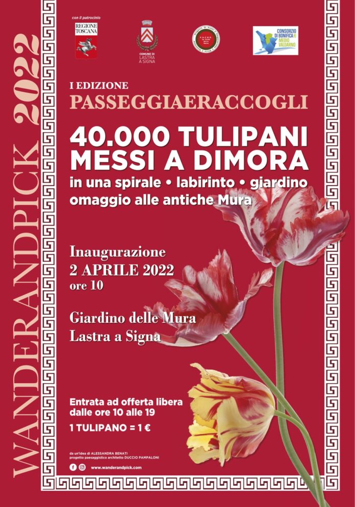 Sono sbocciate le 50 varietà di tulipani rare e antiche piantate a novembre nel giardino interno delle mura di Lastra a Signa grazie al progetto interattivo e didattico Wander and Pick, per la creazione di parchi diffusi e in questo caso per la valorizzazione del giardino aumentando la fruizione dello stesso.