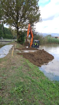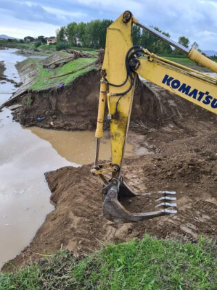- a Quarrata passi avanti ma si continuerà anche domani sia per la ricucitura sulla rotta arginale del T. Stella in località La Costaglia/La Catena sia per stabilizzare una erosione arginale sempre sul T. Stella in destra idraulica in zona Casini; riulito per quanto possibile con i mezzi a disposizione l’alveo del T. Fermulla e si è lavorato alla creazione di una coronella esterna in terra a stabilizzazione delle forature arginali individuate sul T. Senice;