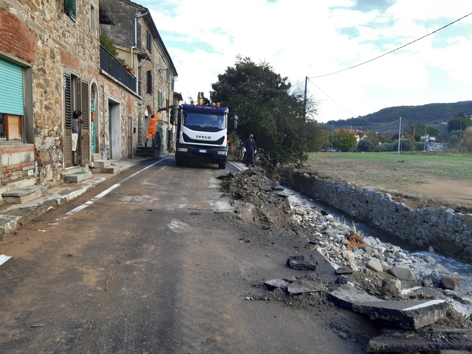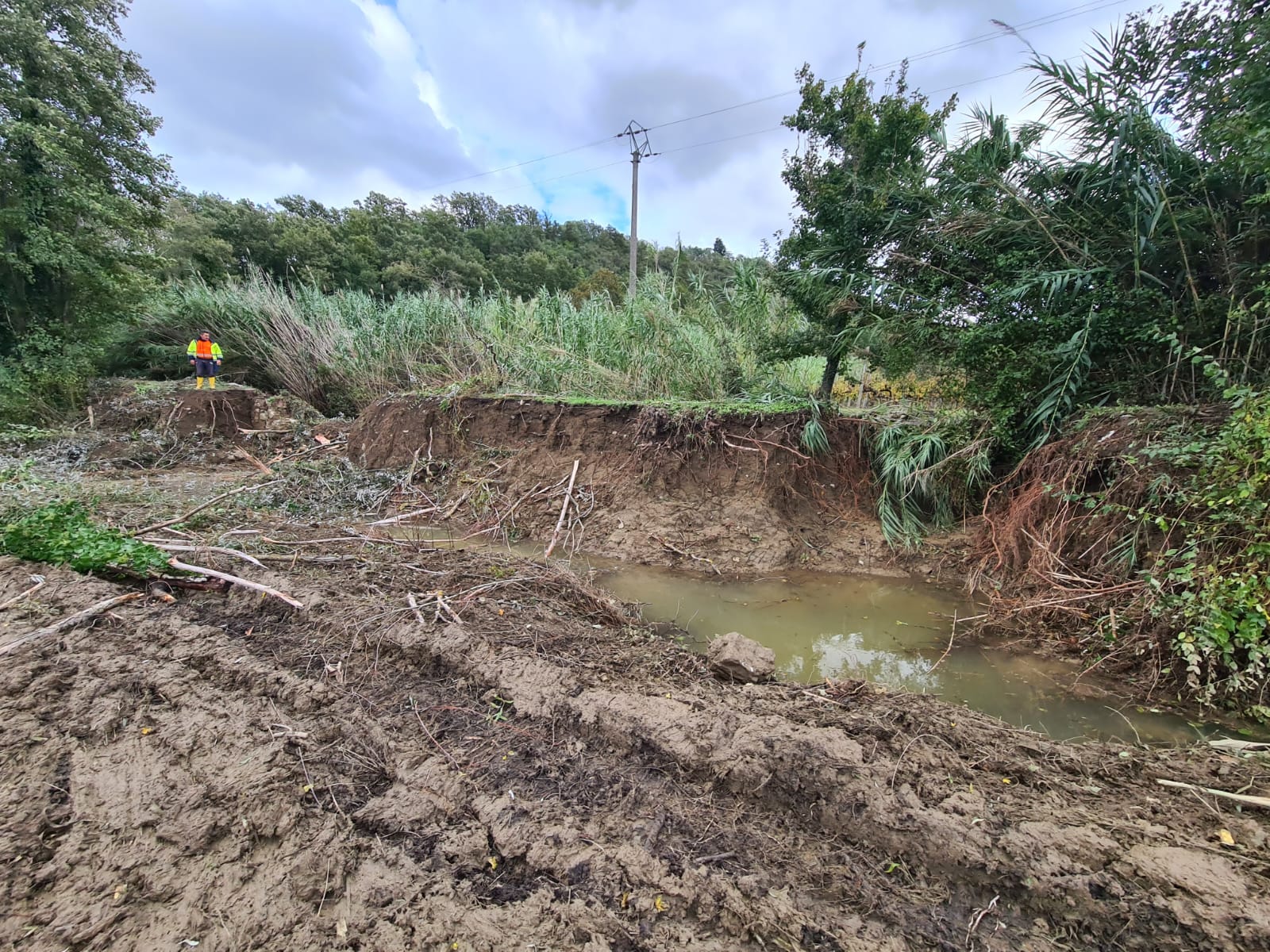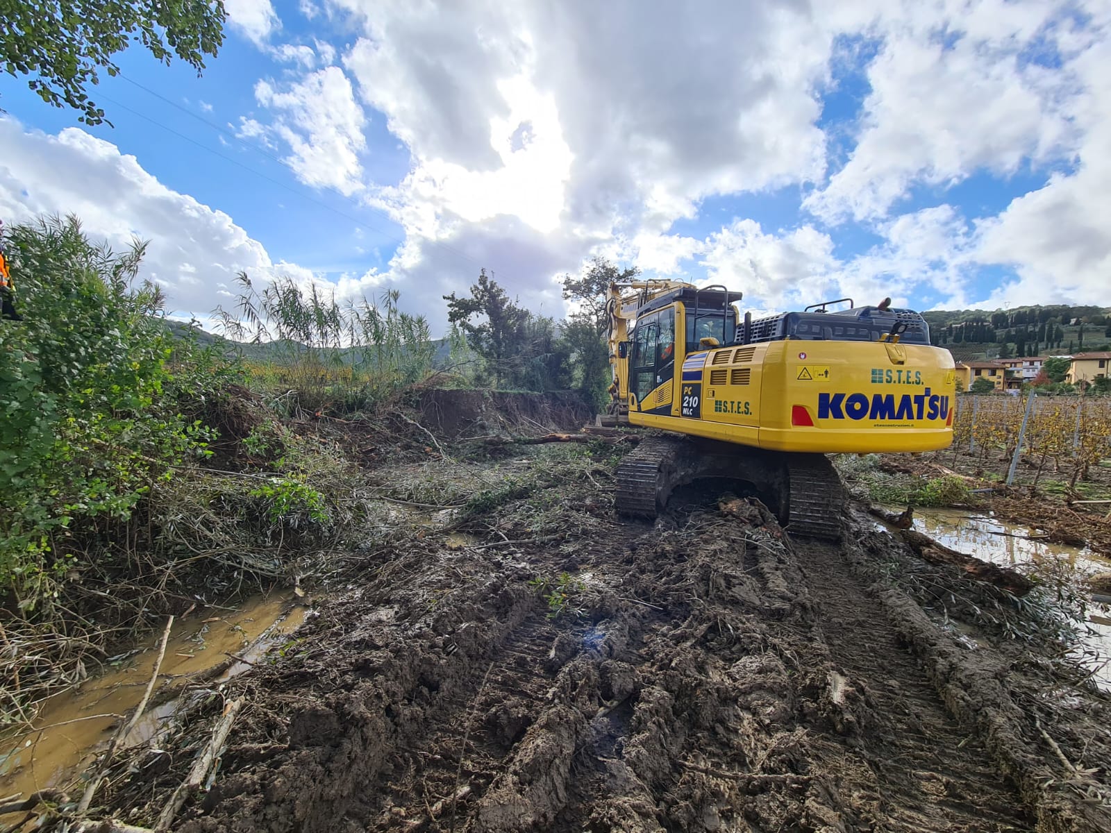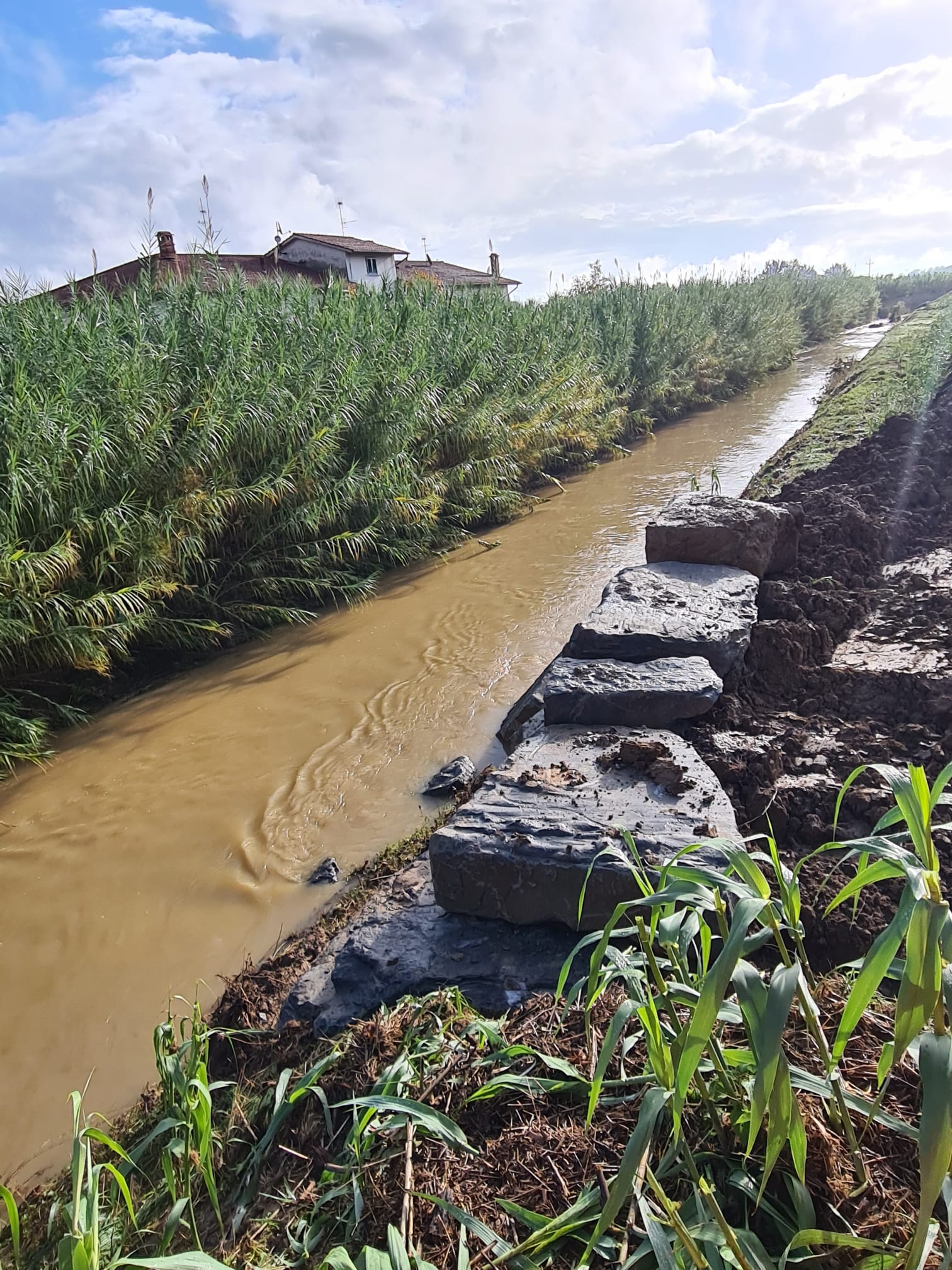 - a Quarrata passi avanti ma si continuerà anche domani sia per la ricucitura sulla rotta arginale del T. Stella in località La Costaglia/La Catena sia per stabilizzare una erosione arginale sempre sul T. Stella in destra idraulica in zona Casini; riulito per quanto possibile con i mezzi a disposizione l’alveo del T. Fermulla e si è lavorato alla creazione di una coronella esterna in terra a stabilizzazione delle forature arginali individuate sul T. Senice;