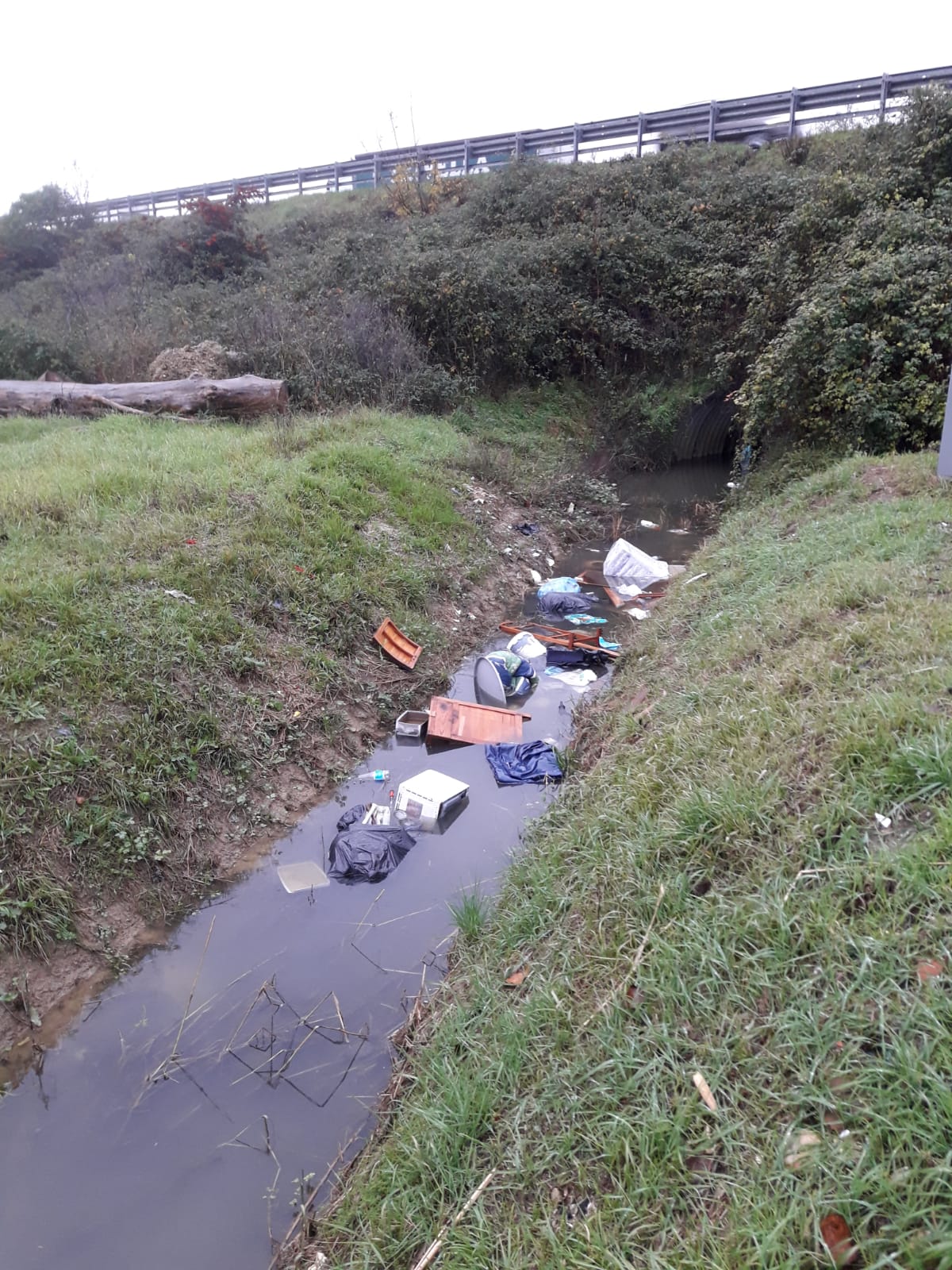 Alberi caduti causa pioggia e vento e soliti abbandoni di rifiuti nei fossi.