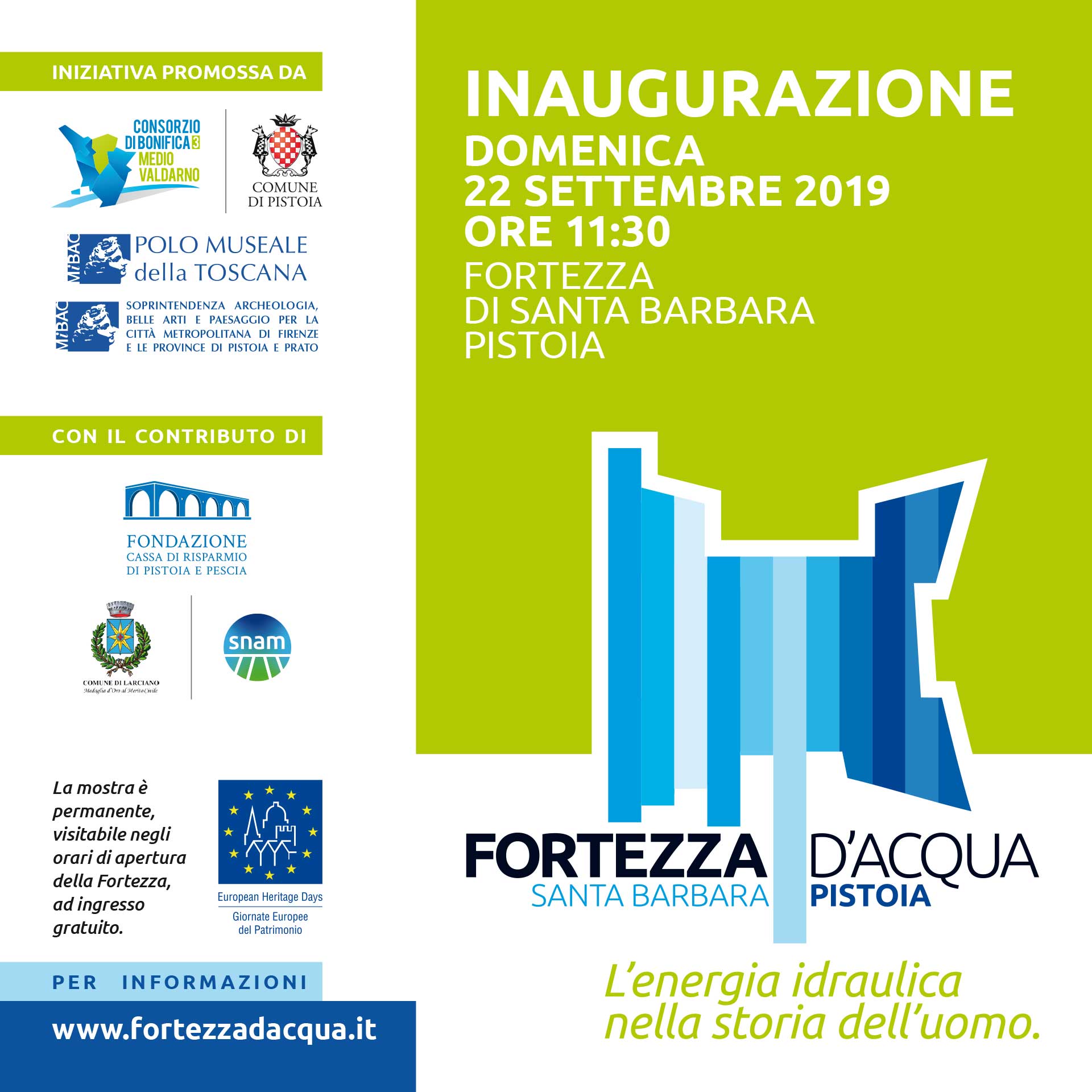 In occasione delle Giornate Europee del Patrimonio (GEP 2019), si tiene l’inaugurazione della mostra “Fortezza d’acqua. L’energia idraulica nella storia dell’uomo” che trova sede nella Fortezza di S. Barbara del Polo Museale della Toscana e che nasce dall’integrazione del progetto “Disegni d’acqua”, promosso dal Consorzio di Bonifica 3 Medio Valdarno con l’allora Soprintendenza Archeologia della Toscana e il Dipartimento di Geografia Avanzata dell’Università degli Studi di Firenze, con il progetto “Il mulino romano di Larciano” della Soprintendenza Archeologia, Belle Arti e Paesaggio per la città metropolitana di Firenze e le province di Pistoia e Prato; durante l’intera giornata sono previsti interventi e visite guidate ad ingresso libero.