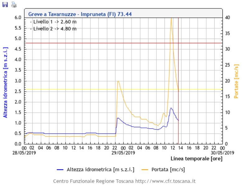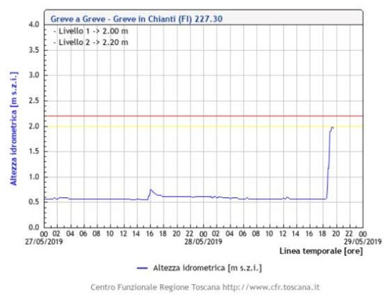 I tecnici del Consorzio, grazie al servizio di reperibilità H24, sono fin da subito entrati in contatto con le strutture di protezione civile per monitorare l’evolversi della situazione, pronti a dare indicazioni ed attivare le proprie squadre di mezzi ed operatori in caso di necessità: ma la situazione, nonostante ll’intenistà della pioggia e la rapidissima ricaduta sui livelli della Greve e dei borri e fossi minori, è rimasta sempre sotto controllo.
