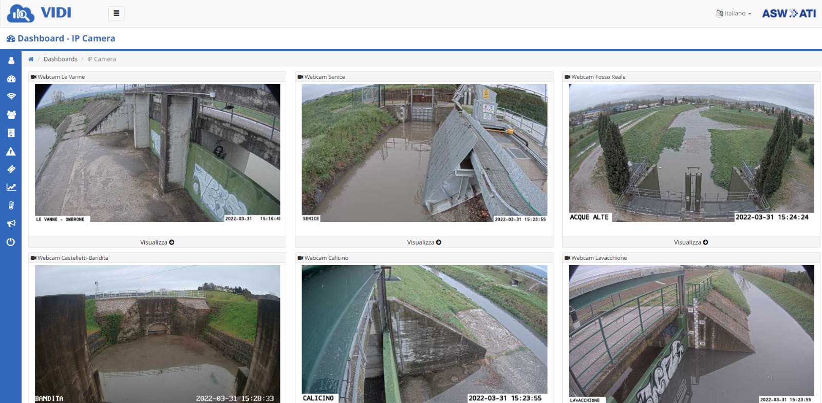 Le telecamere e i sensori idraulici installati ormai su tutti gli impianti e su sempre più organi mobili gestiti dal Consorzio evidenziano ad ora l’entrata in funzione di 4 pompe su 7 all’Impianto Idrovoro di Castelletti, localizzato a Signa ma a servizio di una vasta zona della Piana Fiorentina e Pratese e di 2 pompe su 3 tra i torrenti Senice e Quadrelli, a Quarrata, una delle sistemazioni più recenti in uno dei nodi idraulici più complessi dell’intero comprensorio.