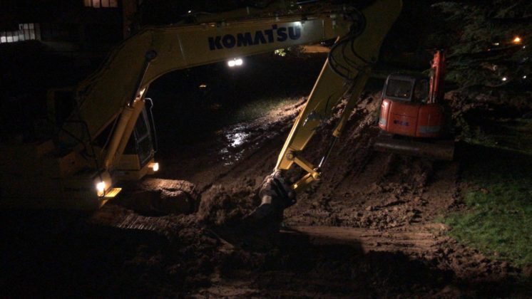 Nel corso della giornata si sono riscontrate diverse criticità, non certo minimizzabili ma per fortuna localizzate e in zone basse, lungo strade secondarie e che non hanno riguardato direttamente i corsi d’acqua principali, salvo l’apertura di un fontanazzo sull’argine del Torrente Vingone a Lastra a Signa in zona stadio, non lontano dal centro storico del paese, che in caso di progressivo allargamento della falla arginale avrebbe potuto causare la rottura di un tratto del rilevato che avrebbe provocato un diffuso e tragico allagamento dell’abitato. Su questo criticità (in termini tecnici un fontanazzo), riscontrata immediatamente grazie alla rete del monitoraggio di Consorzio, Genio Civile della Regione Toscana e sitema della protezione civile e del volontariato si è intervenuto con massima urgenza stabilizzando la situazione con una coronella, ossia circondando il punto di rottura con un nuovo argine di sicurezza in terra lavorando al buio con le luci artificali di emergenza e concludendo già entro le ore 19 (vedi foto).
