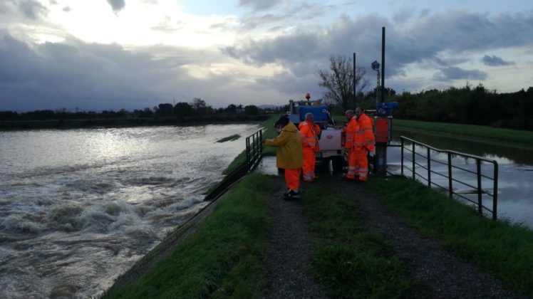 Intera notte di lavoro tra 16 e 17 novembre in cui si sono visti salire quasi tutti i corsi d’acqua oltre primo e secondo livello di guardia: fin dalle prime luci dell’alba tutti gli impianti idrovori in funzione, parecchie casse di espansione attivate. Tecnici e operatori consortili sul campo e al monitoraggio senza sosta.