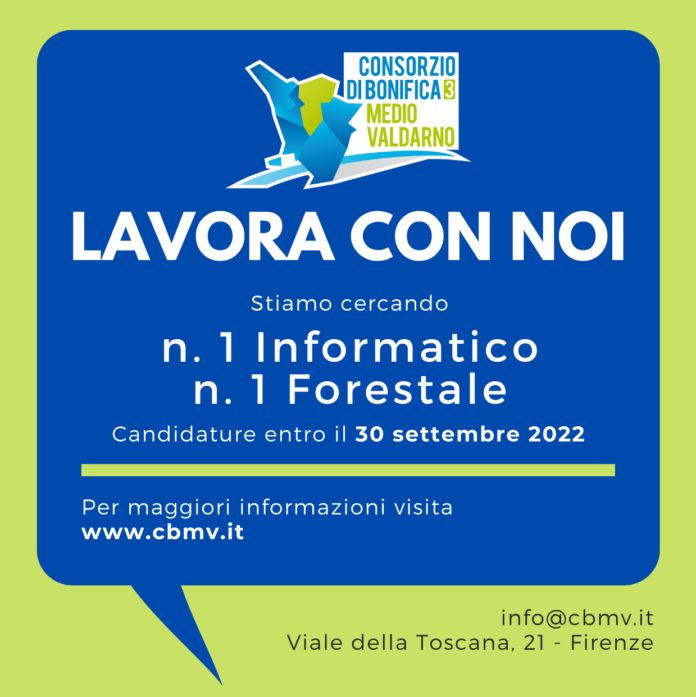 Un informatico e un forestale: sono queste le opportunità di lavoro attualmente aperte al Consorzio di Bonifica 3 Medio Valdarno.