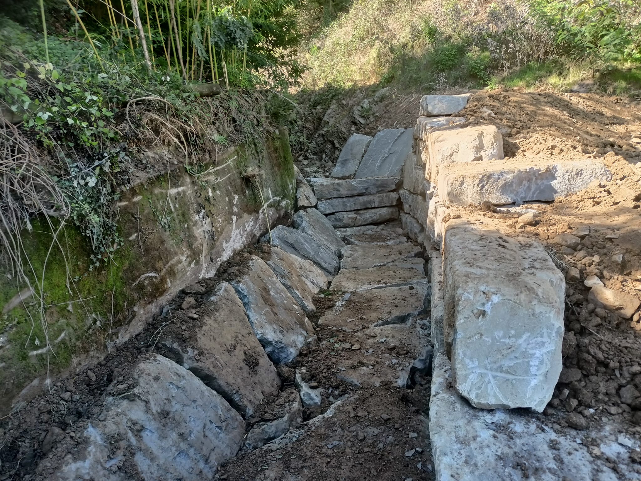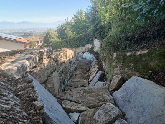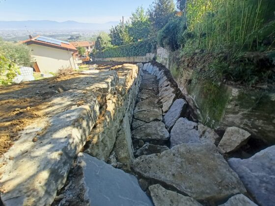 Si procederà con la ricostituzione della sezione utile al deflusso, con diverse stabilizzazioni del fondo e scogliere di protezioni laterali e con la realizzazione di un bacino di carico con muretto in cemento armato che favorirà il funzionamento della tombatura anche in caso di nuovo abbondante trasporto solido dal tratto collinare soprastante.