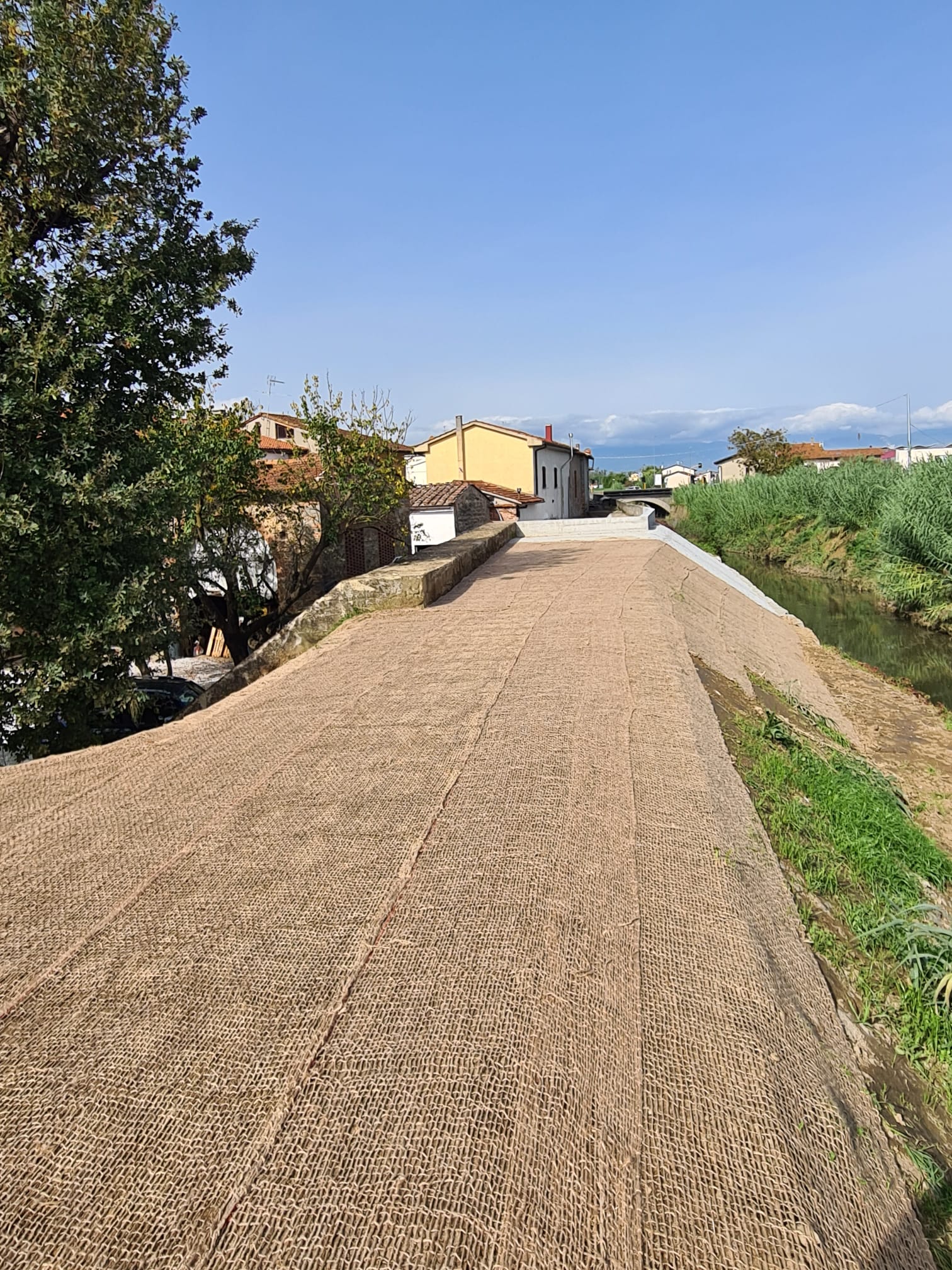 Sul Fermulla, in diversi tratti dalla Fonte di Tacinaia in giù, così come su molti suoi affluenti (Mulina, Morione, Buscione, etc.) il Consorzio ha già concluso ormai da tempo diverse manutenzioni; alle rifiniture ormai, con il posizionamento della biostuoia per favorire il rinverdimento, anche l’argine del T. Stella a Ponte Torto, completamente ricostruito e fortificato con l’unione dei tratti in muratura per una maggiore stabilità e dunque sicurezza idraulica.