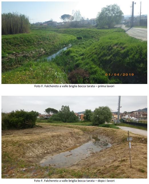 Sul Fermulla il Consorzio ha lavorato al risanamento del muro in sinistra idraulica a monte di Via San Lorenzo, alla risistemazione di una briglia a valle di Via San Lorenzo con ricostruzioni in pietra e stuccature, alla messa in opera di nuove portelle a clapet agli scarichi stradali e al ricentramento d’alveo, senza asportazione di materiale all’esterno, al fine di regolarizzare il corso e prevenire lo scalzamento dei muri presenti; operazione, questa, che insieme al nuovo intervento sulle tane di animali, proseguirà ancora verso monte quando le condizioni del corso d’acqua lo permetteranno.