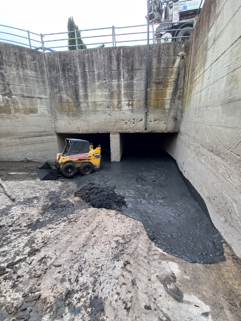 Una volta eseguite le operazioni preliminari, con l’ausilio sia di un escavatore cingolato che di una minipala cingolata, è stata effettuata la rimozione del materiale depositato, trasferito in cassoni stagni, caricati su camion per essere portati alla discarica per il loro smaltimento.