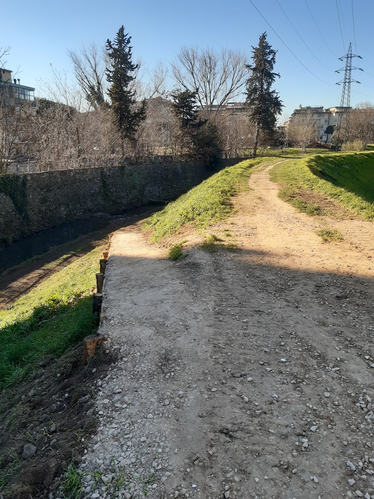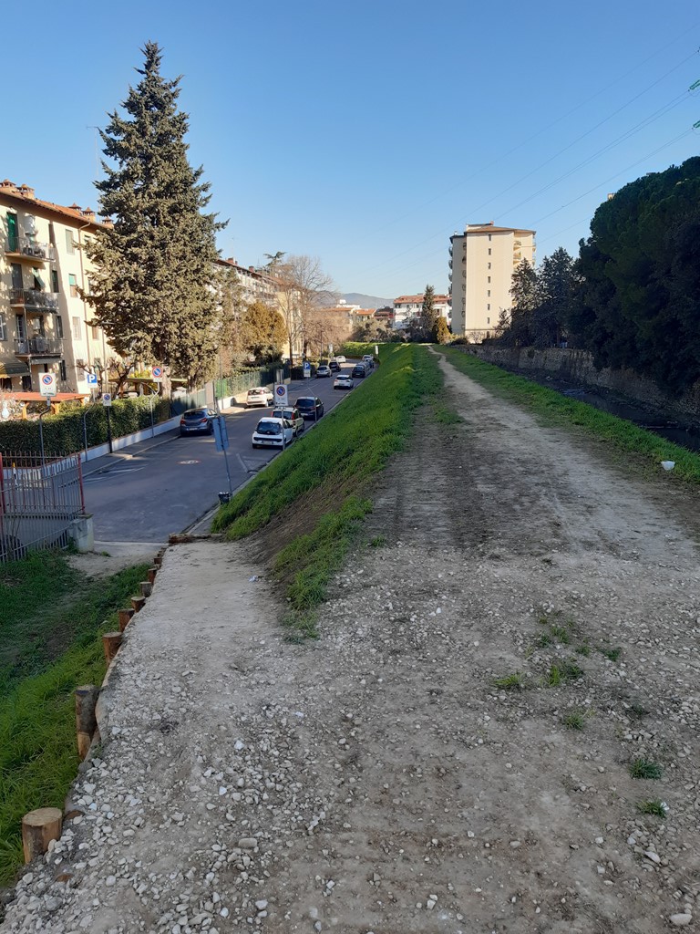 Firenze, quartiere di Novoli, poco a valle del Ponte di Mezzo, all’altezza della Scuola Mameli in via Corsali: qui in testa d’argine sono state create due nuove discese pedonali sulle sponde per facilitare l’accesso all’alveo sia da parte di uomini e mezzi della bonifica, sia per i cittadini che possono così godersi al meglio la striscia verde lungo il corso d’acqua.